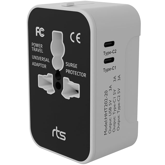 2 Type C + 1 USB Plug Universal Travel Adapter, International All in One Worldwide Travel Power Plug Adapter Suitable for 200+ Countries Wall Charger for USA EU UK AUS European Cell Phone Laptop