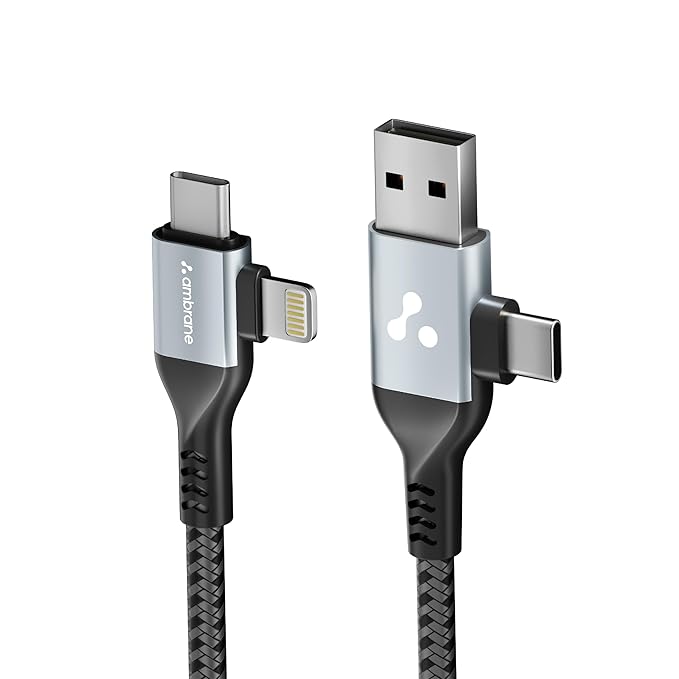 4 in 1 Multi-Functional Charging Cable | Fast Charging & Data Sync | Universal USB, Type-C, Lightning Cable | Compatible with Android, iPhone, Tablets, and USB-C Devices (AC4CL-15, Silver)